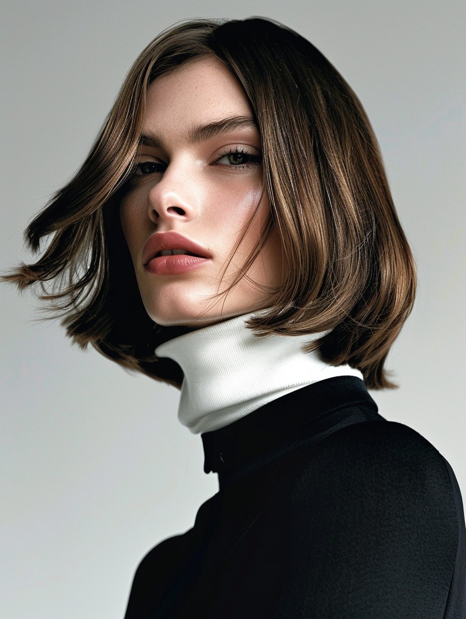 editorial fashion photography, portrait profile shot of an Italian model with a blunt long bob --ar 3:4 --sref https://s.mj.run/FF76S3T6PPU --sw 50