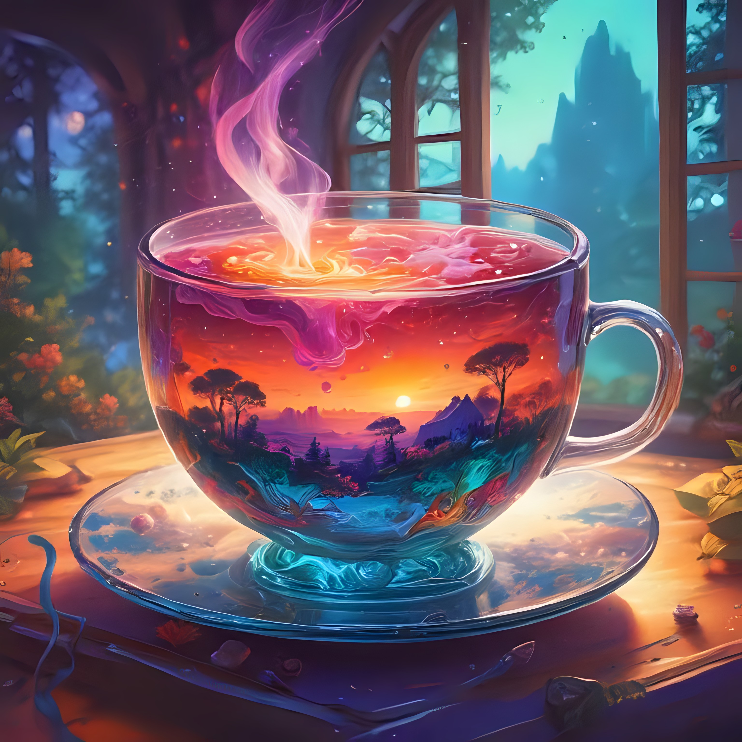 This prompt will generate "Any fantasy digital art in a glass container"